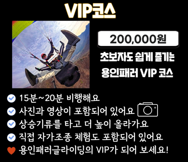 - VIP 코스 (20만원): 가장 긴 비행 시간과 함께 모든 서비스가 포함된 최상급 체험으로, 완벽한 경험을 원하는 분들에게 추천합니다.